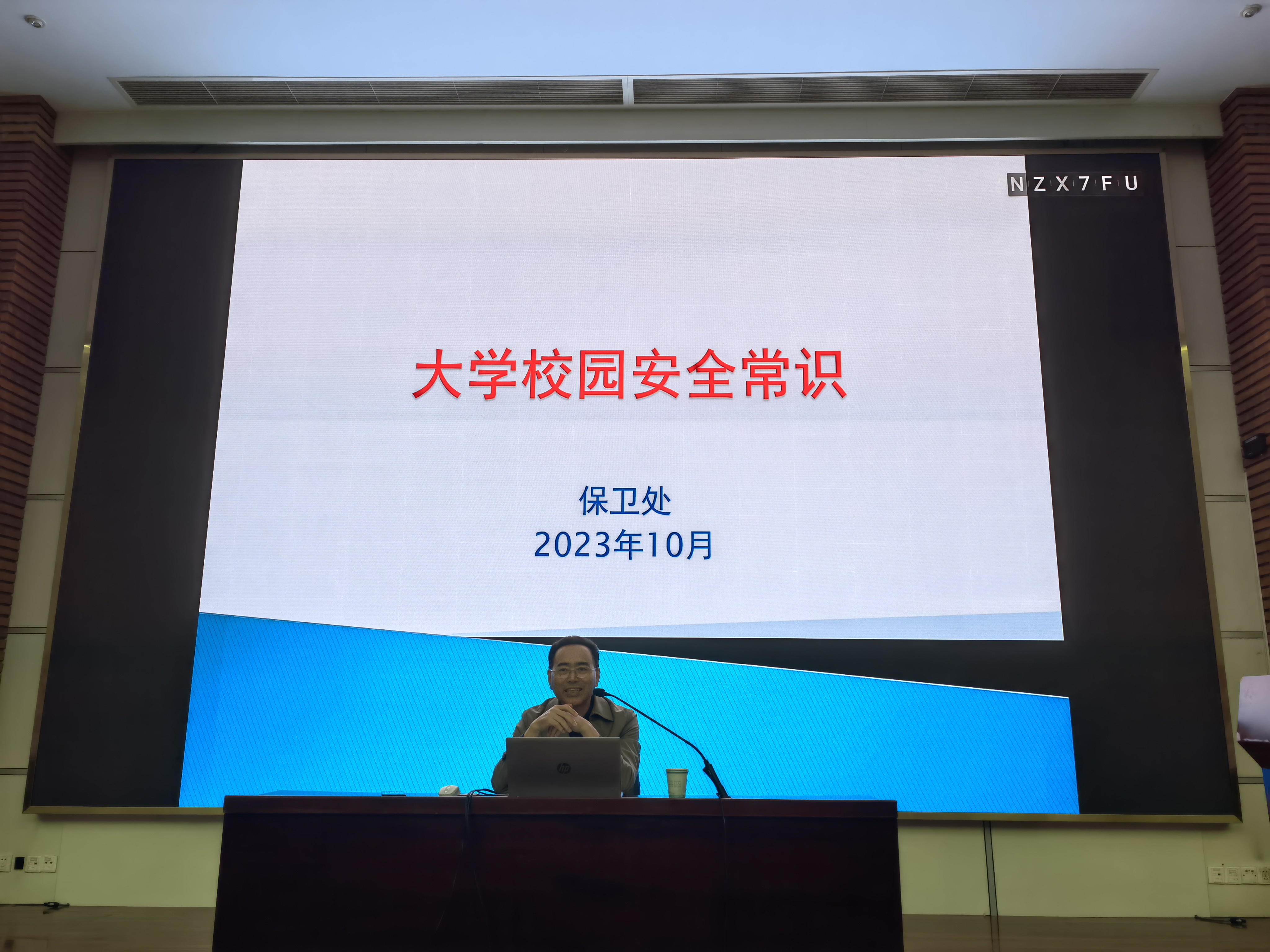10月23日下午,为提高同学们的安全意识,保卫处副处长吴青山从“安全的重要性”、“防诈骗”、“防火安全”、“交通安全”、“治安安全”五个方面为公司本科新生开展了一场安全知识教育讲座,讲座由辅导员许文傧主持。