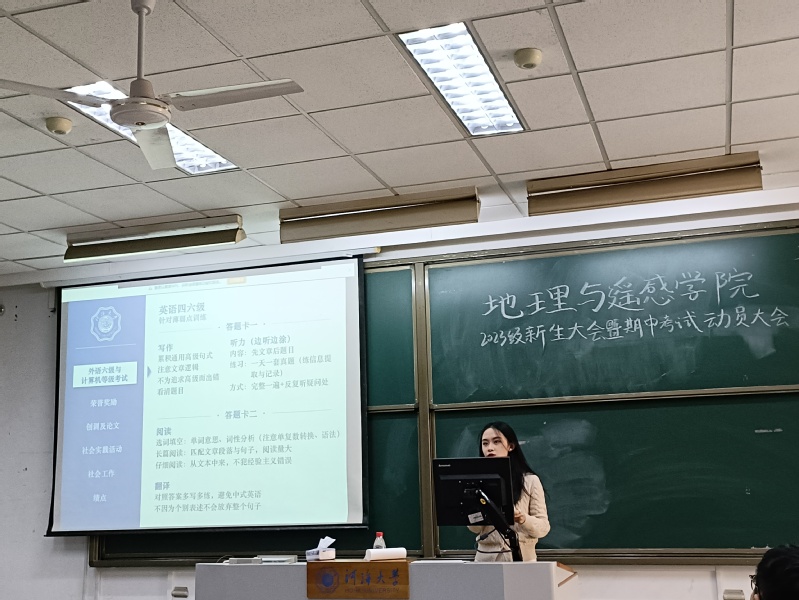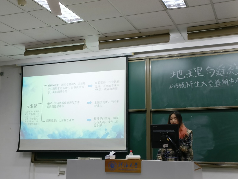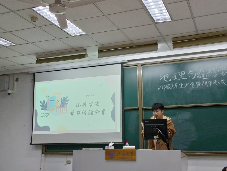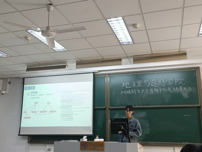 最后,地信一班姚远同学作为优秀员工代表进行学习经验分享。姚同学建议同学们要设立好自己的目标,制定学习计划,同时保持积极的心态,学会分配好自己的时间,让老员工活更充实、学习更高效。