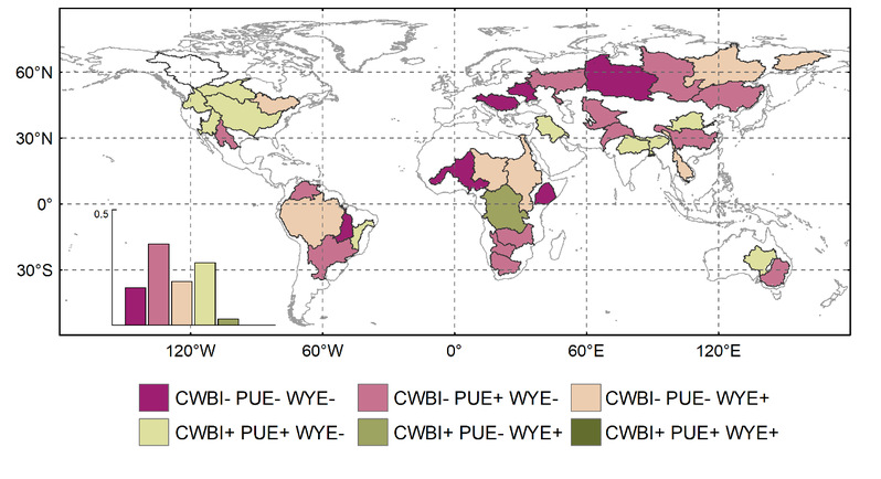论文基于陆表降水对固碳和产水的分配关系,构建了新指数—固碳水耦合效益指数(Carbon Water Benefits Index,CWBI),客观综合评价了全球不同流域的固碳与产水效益及对环境因素的敏感性,厘清了全球主要流域碳水耦合的变化响应模式与主导因素,可为水资源利用、流域生态保护监测与评估提供科学依据。