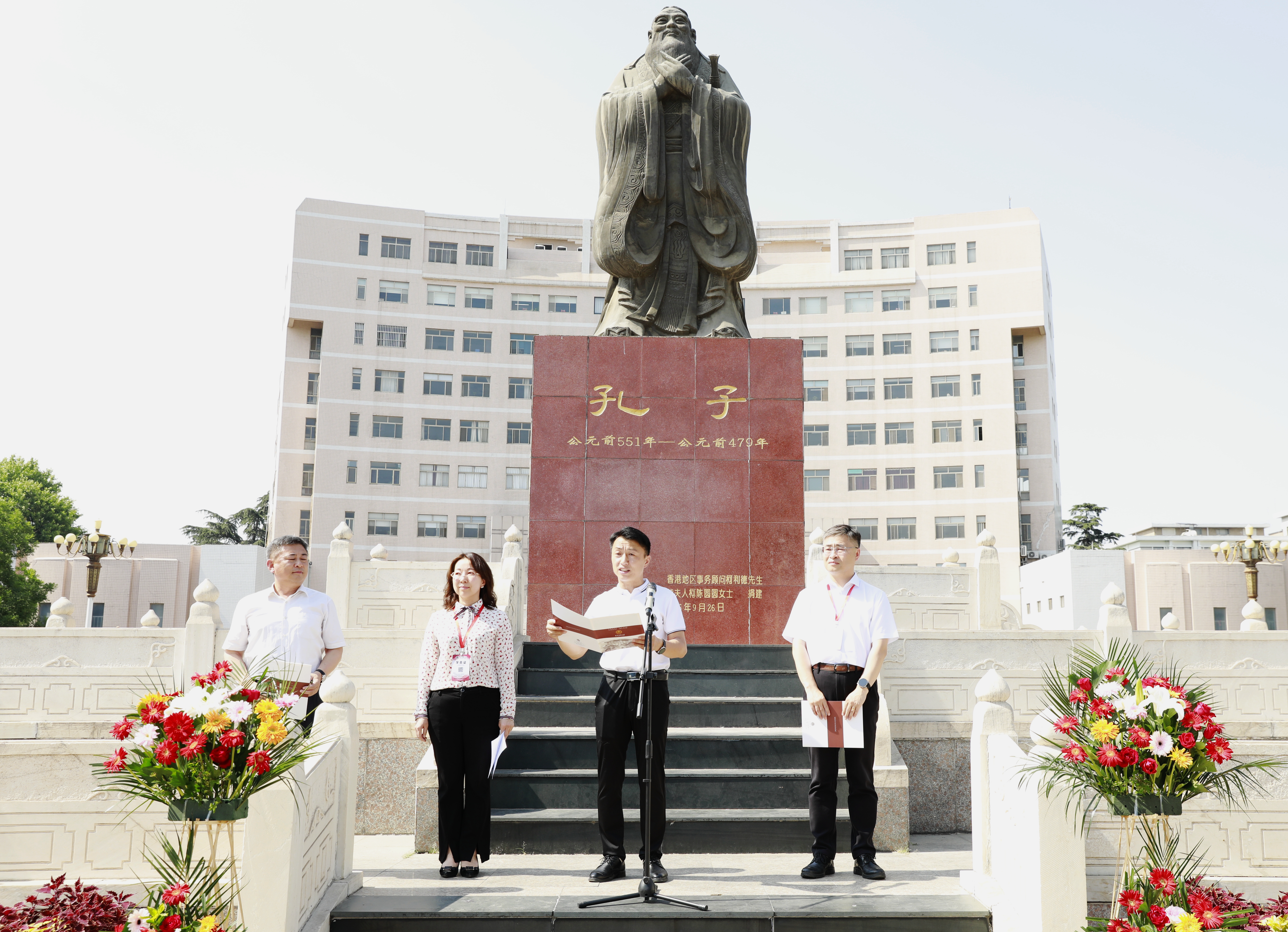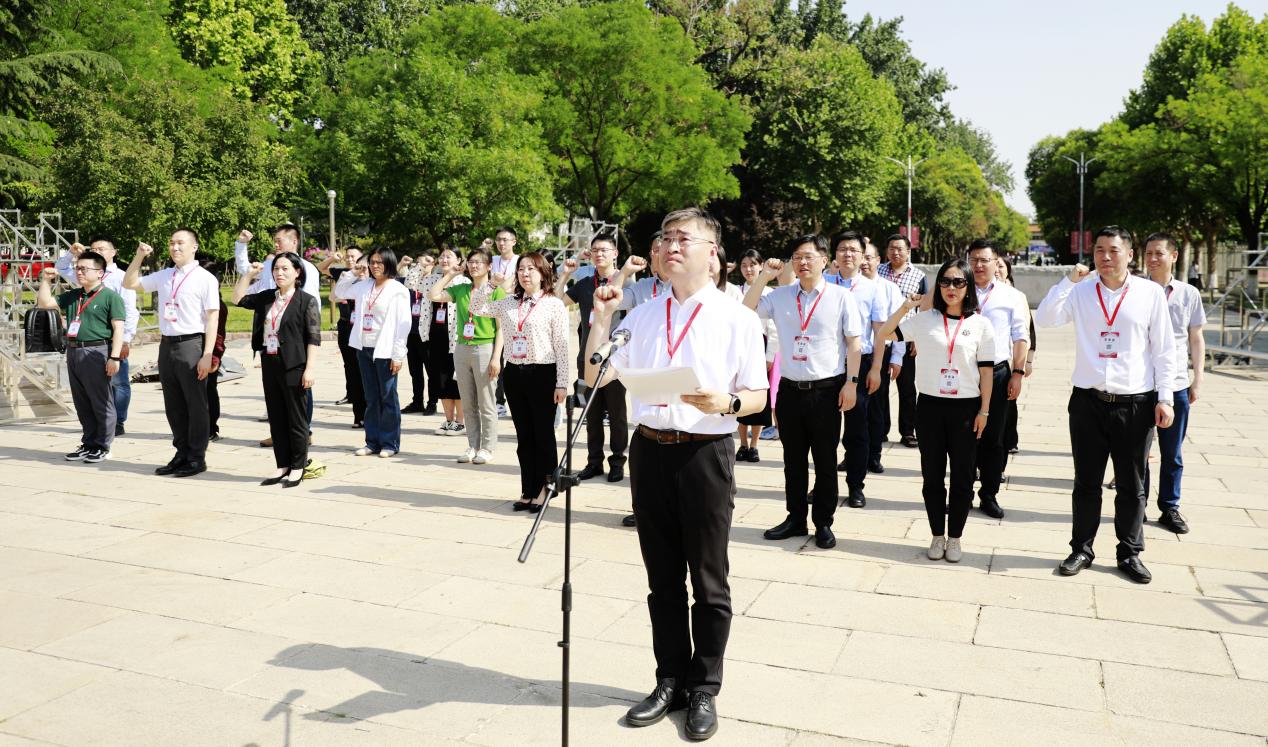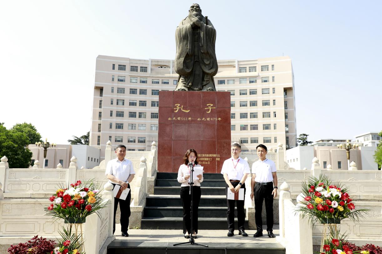 “师礼润德”活动中,学员们在孔子文化广场的孔子像前礼拜至圣先师,由水文公司党委书记石朋带领学员们同诵人民教师誓词。