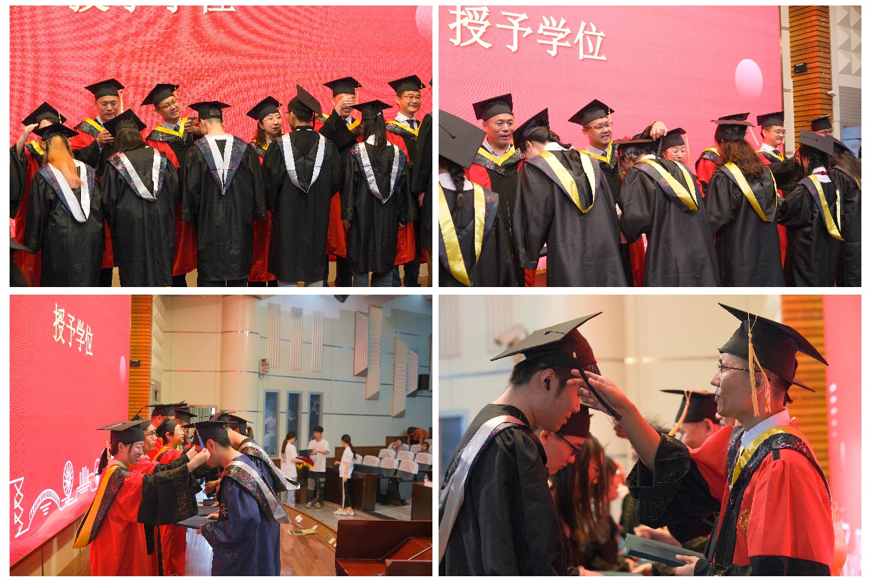 公司领导、系主任代表、班导师代表、教师代表为2024届毕业生颁发学位证书并拨帽穗。
