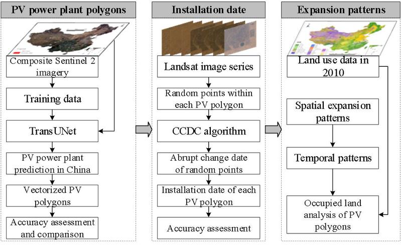 图1. 中国光伏电站遥感识别及其扩张时空格局分析框架