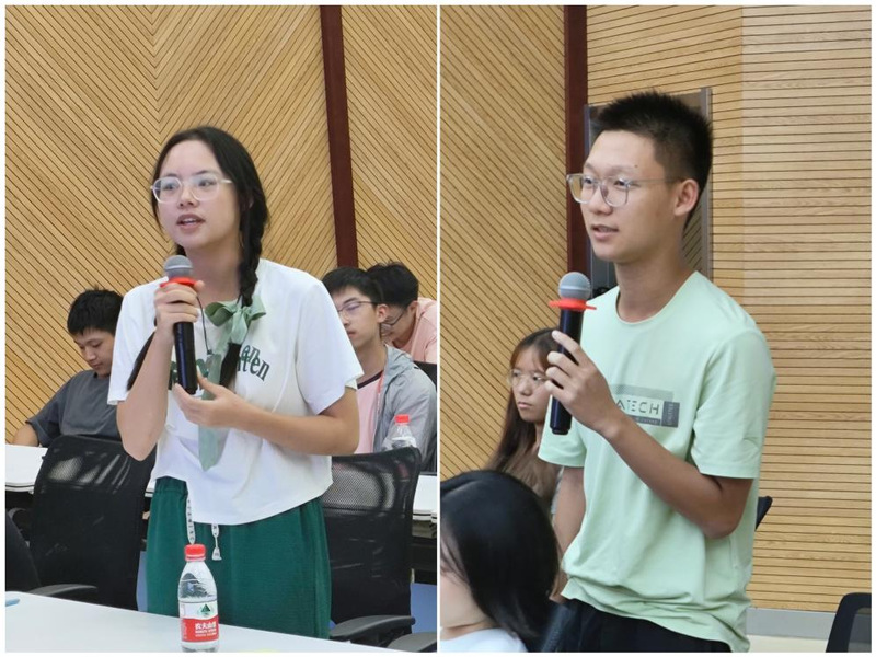 在交流提问环节,24级本科新生王逸晨分享了自己对这场报告的感受,并询问遥感专业要如何参与到可持续发展科学中;24级本科新生肖涵林就个人和集体两个方面对可持续发展的影响因素差异提出了自己的疑问。贺经理对两位同学的问题进行了详细的解答,同学们纷纷表示受益匪浅。