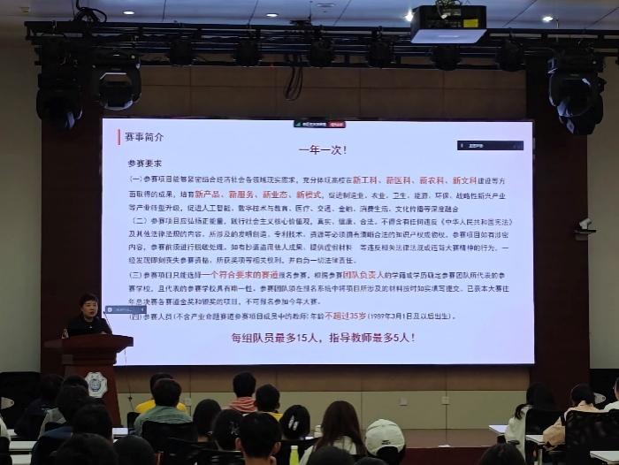 冯芸老师重点讲解了大赛网评环节的材料准备技巧。她强调,参赛材料需要图文结合、简洁明了,要突出项目的核心优势和创新点。此外,她提醒同学们在材料中明确项目的逻辑性、市场价值和技术先进性,做到内容精炼、亮点突出,才能在激烈的竞争中脱颖而出。