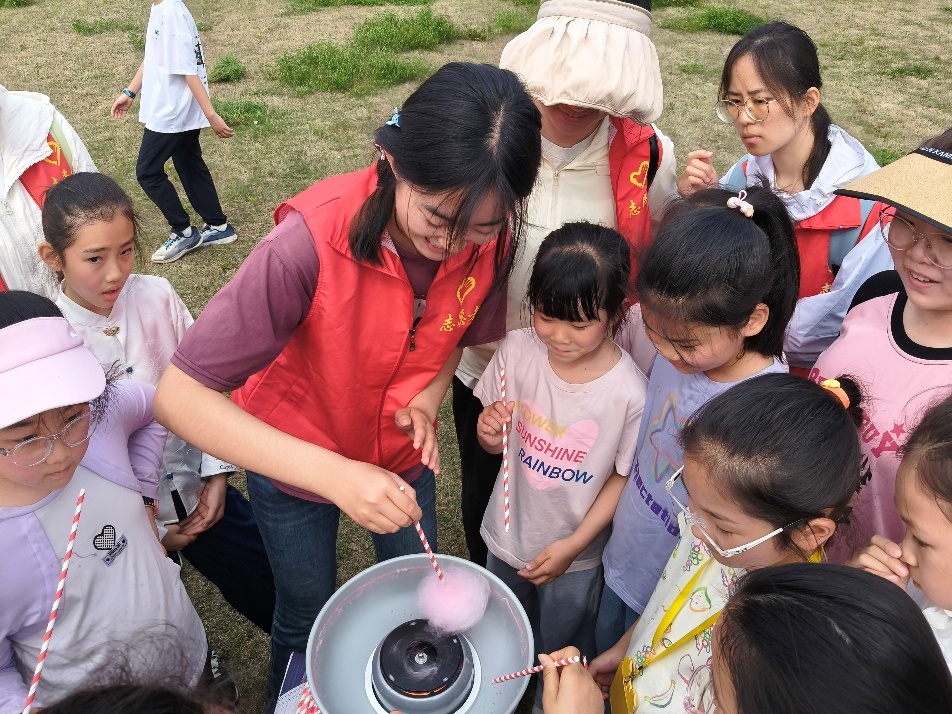 联学共建显成效,生态研学播种绿色希望。在常州茅山生态文明实践基地,活动创新采用“大手拉小手”模式,联合段玉裁小学开展生态研学。老员工志愿者与小员工结对搭建三大互动展区:在“绿书签工坊”,孩子们用落叶创作生态绘本;显微镜下观察植物细胞的结构奥秘;生态知识转盘前,趣味问答与盲盒奖励激发学习热情。最受欢迎的“甜蜜生态课”将棉花糖机搬进课堂,志愿者边演示蔗糖结晶过程,边讲解生物质能源知识,让生态理念在欢声笑语中生根发芽。活动尾声,师生共赴生态茶园,体验采茶、炒茶工艺,在氤氲茶香中感悟生态智慧。